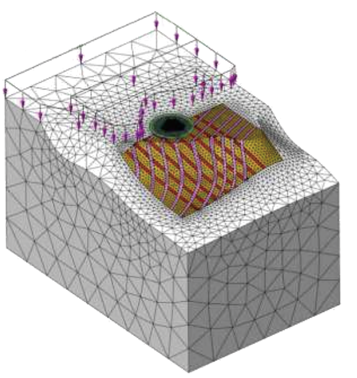 - 橋梁ケーブル定着のためのアンカーブロックが設置される地盤の安定性解析