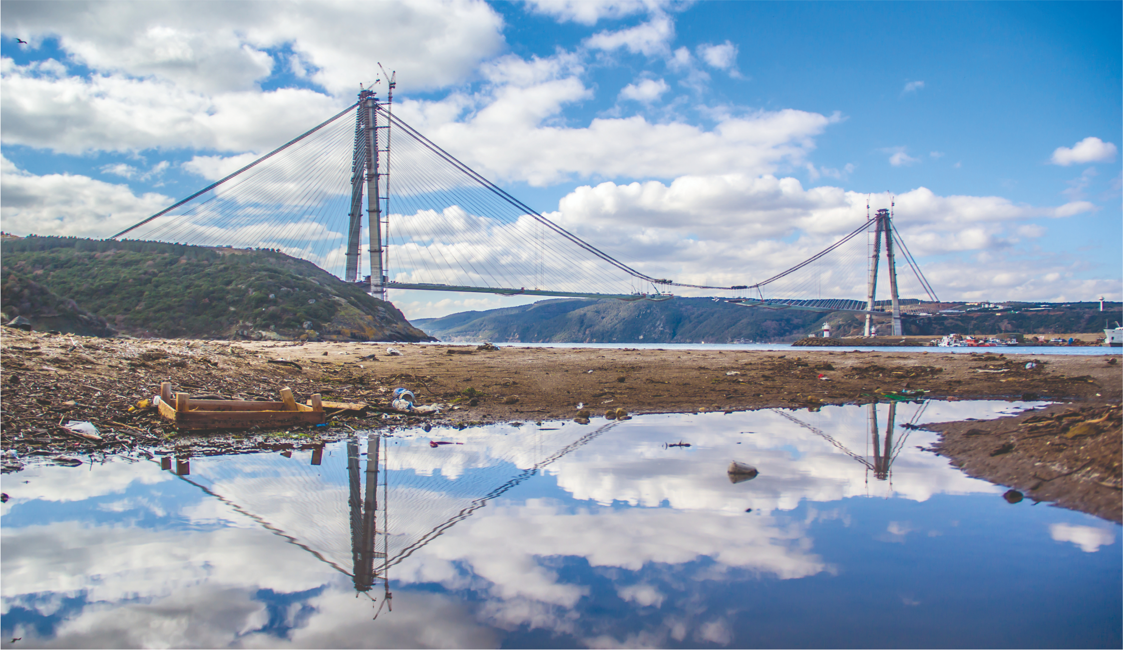 ボスポラス第3大橋は、延長260kmの北マルマラ高速道路の一部です。全長2.2km、主径間1.4kmで、イスタンブール北部において欧州側とアジア側を結んでいます。幅59mの本橋は、8車線高速道路と2車線鉄道を同一レベルで収容する世界初の橋梁です。
