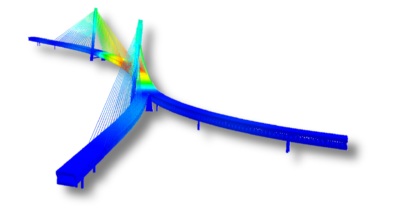 Lange Wapper Bridge は、非対称に傾いた 2 本の主塔と、曲線形状に湾曲したユニークな二重デッキを備えています。従来の斜張橋設計とは異なる傾斜主塔の形態やデッキの曲げ剛性の活用について疑問が呈されましたが、従来の斜張橋と同様の力学的挙動を示します。