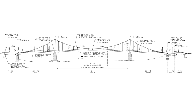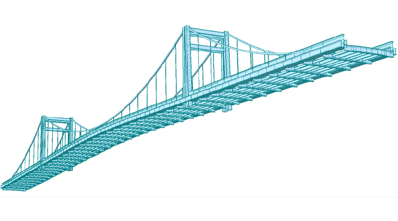 これは橋梁が 3D でモデル化された初の事例です。モデルは橋梁の既存荷重を明らかにし、提案されたリハビリ計画に基づいて新しい死荷重を決定し、現代設計活荷重を算定し、提案された施工手順を評価するために使用されました。