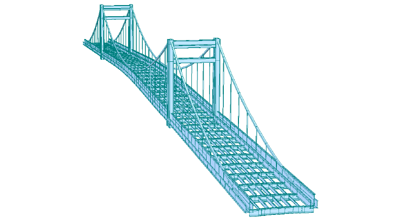 構造解析のため、Michael Baker チームは橋梁モデリングと解析用に特別に開発されたエンジニアリングソフトウェア MIDAS Civil を使用し、Andy Warhol Bridge の 3 次元有限要素モデルを作成しました。