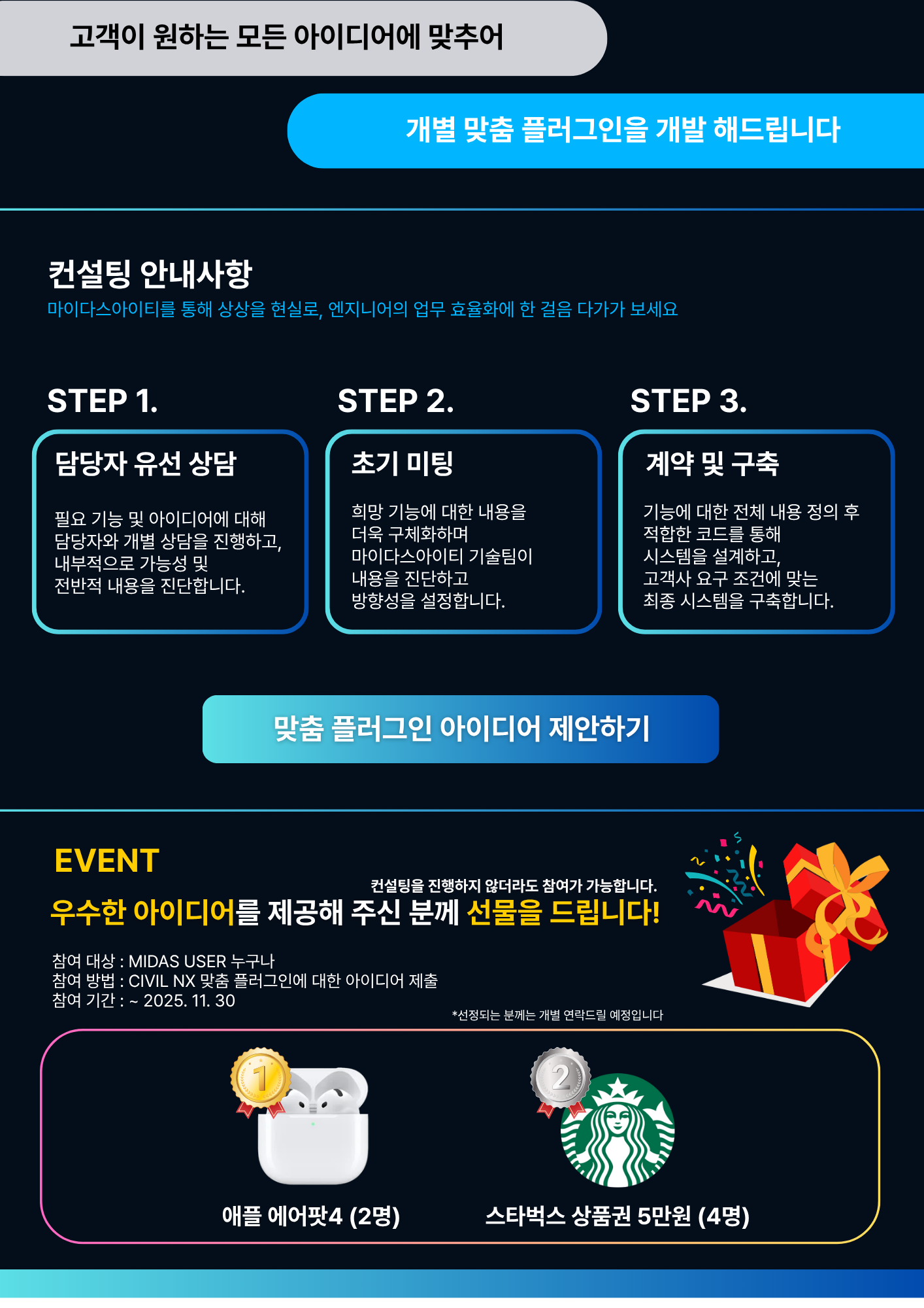 이번 플러그인 컨설팅과 함께, CIVIL NX에 필요한 기능이나 자동화 아이디어를 제안해 주신 분들께