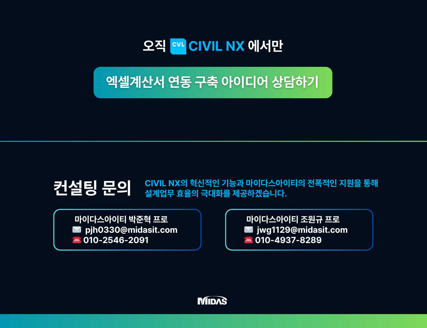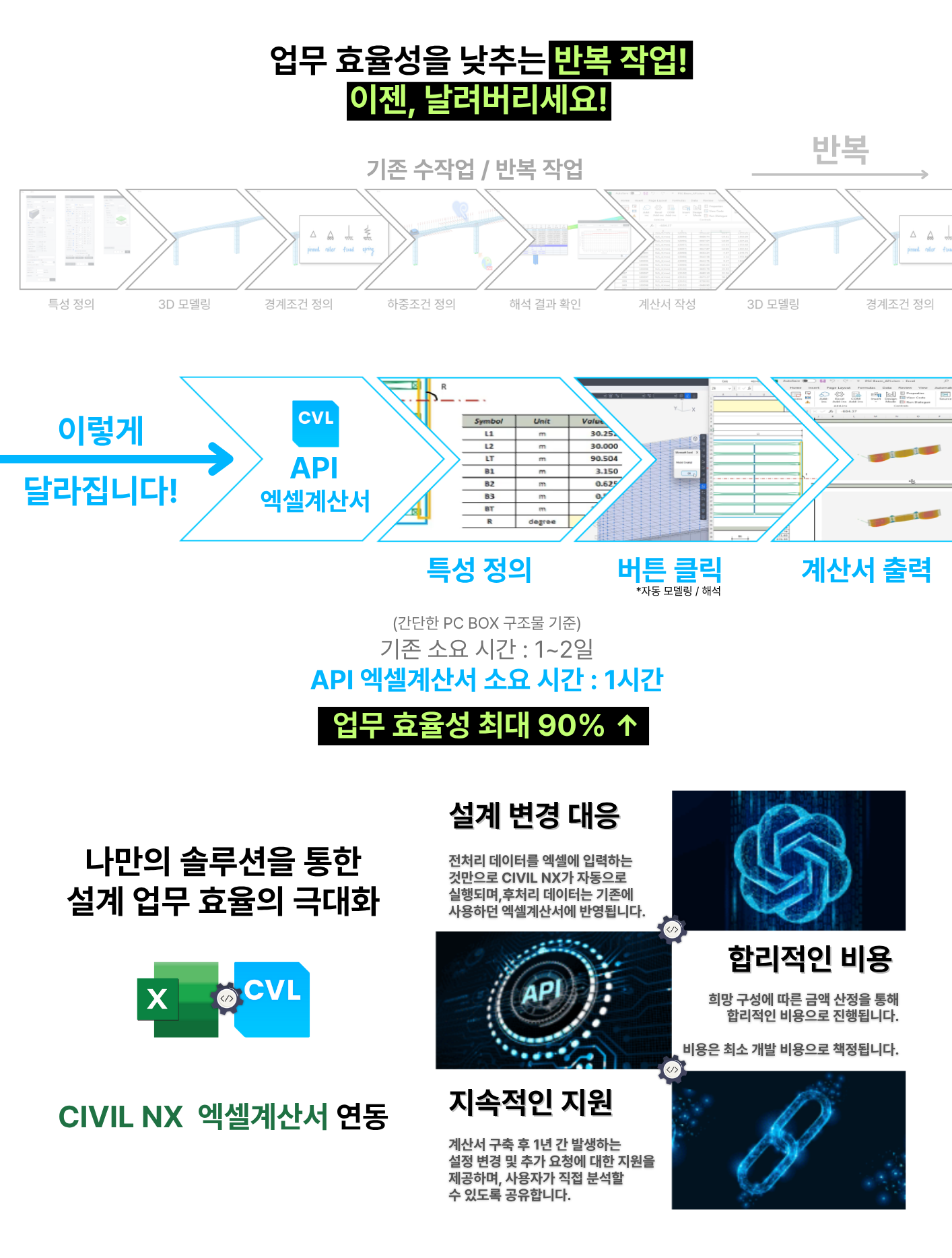 마이다스아이티는 CIVIL NX의 고도화된 API 기술을 활용하여 고객사 고유의 업무 프로세스를 자동화하고 생산성을 극대화하는