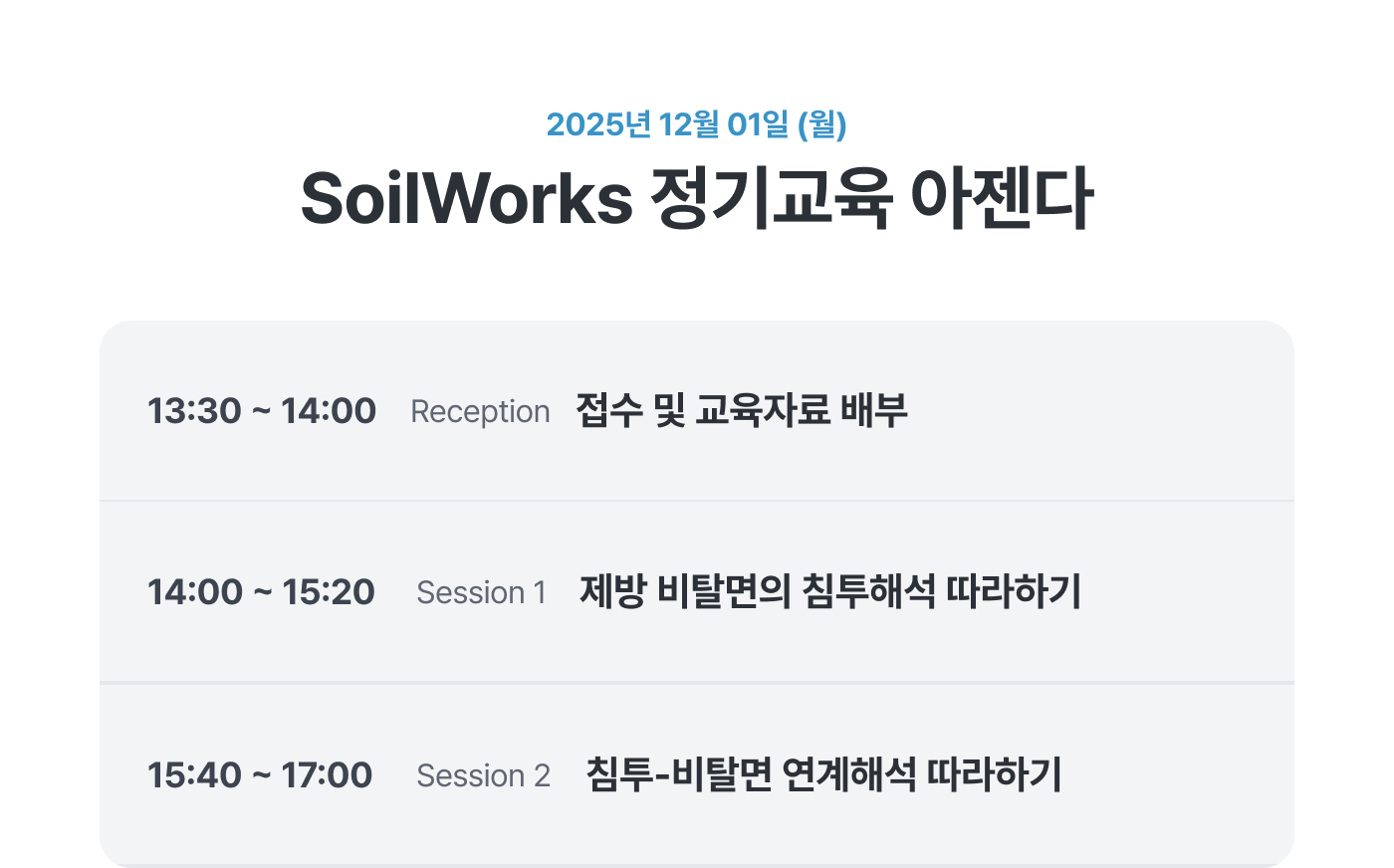 2025년 12월 지반분야 정기교육을 실시합니다.